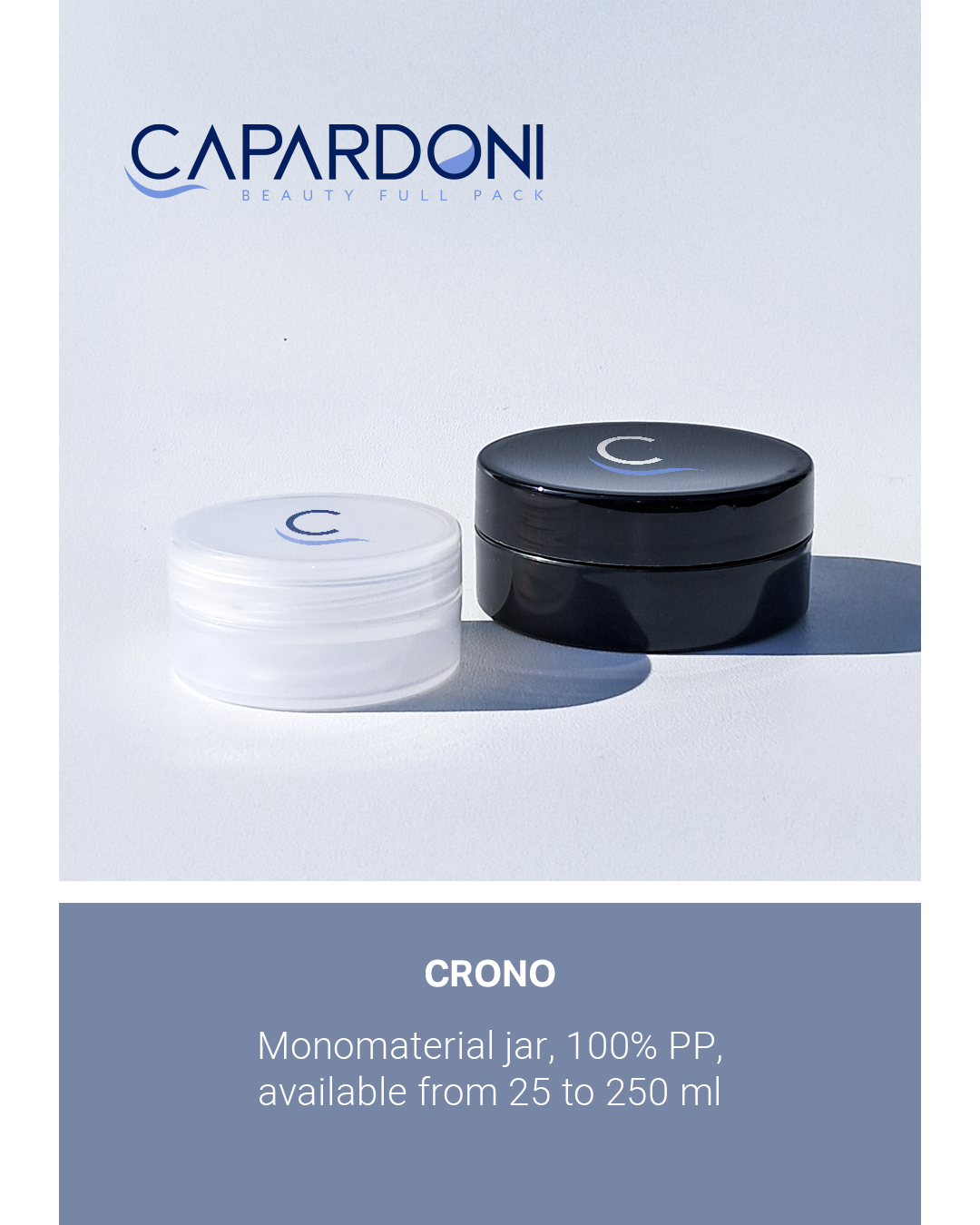 • Crono → Vaso monomateriale in PP, disponibile da 25 a 250 ml