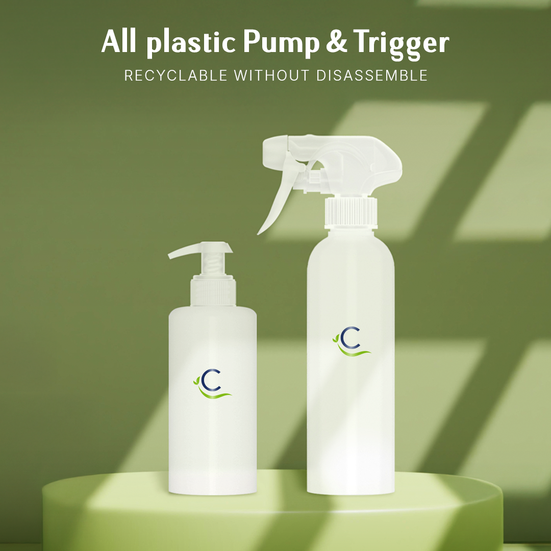 Le nostre pompe dispenser e trigger interamente in plastica sono 100% riciclabili senza bisogno di smontaggio.